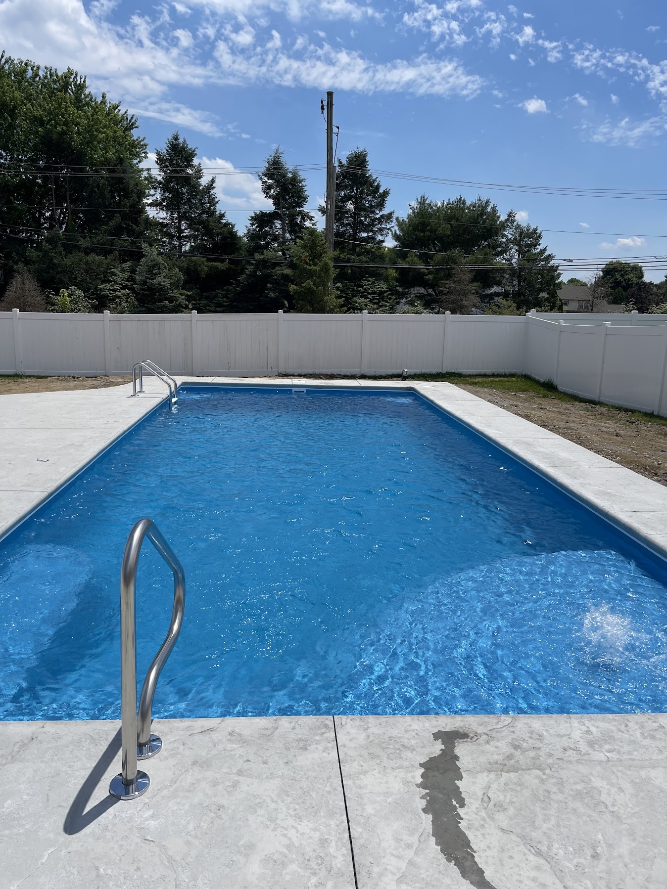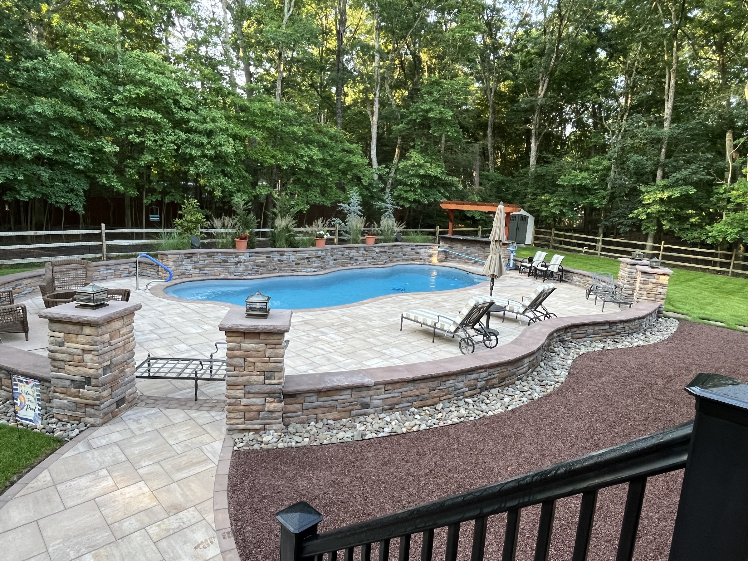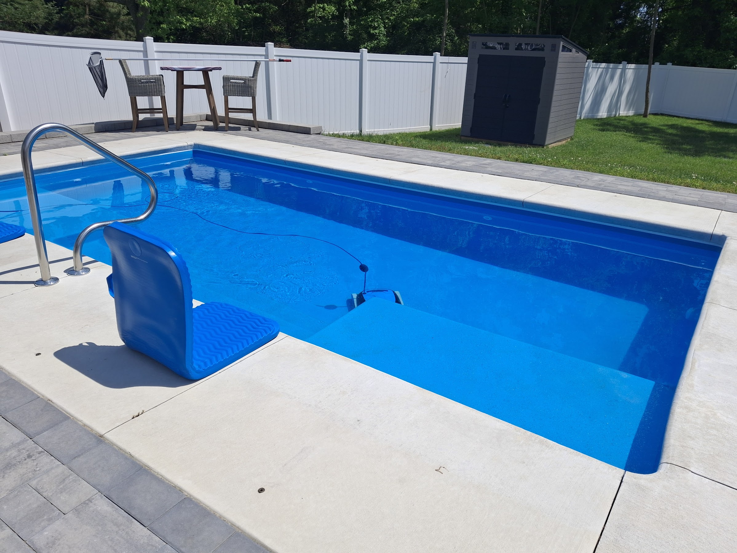 No linings to replace and no stress with our dogs. Also, a fiberglass pool is constructed offsite and in 1 day Artistic Pools had this large pool excavated for and put in the ground. I cant even imagine having it take months to have a concrete or vinyl pool constructed on-site in my backyard. It still is a process, as after it went in, the electricians come 2 days later, the pool is given time to settle, the concrete surround is poured, the pool equipment is started, pool cleaned up, and you get a tutorial. During this time, CLC landscape company was installing a large drainage system, related to having a pool, that my town required, then got paver path and patio built. Its a process. So going with a fiberglass pool was a great move, shortened the overall lengthy process of doing a pool, and I can tell you it is a well designed durable pool and at much less cost than a concrete pool. In the planning and install process, it was clear that Artistic Pools has this down to a science. We opted for LED lights and an automatic pool cover. Artistic Pool uses Pennco Automatic covers. They also use their high end level step on lid automatic cover, which we didn't even know I would get when we signed contract. Its a great automatic cover that comes with a high quality pump that you put on top of cover when closed so it drains off water when it rains. Its a solar cover also and keeps the heat in, so we are still using the pool in September by covering it during cool times of day. Its also a great safety feature for our dogs and grandchild. You can use it as a winter cover, but we opted to get a separate standard winter cover, because you got to worry about allowing snow to accumulate and remain on cover according to the Pennco installer. We want a worry free winter. Jenea who helps and handles the permit process is a gem. Mike handles operations and, thank you, it was tight to get this large pool around side of house to lower yard level and it wasn't easy. You got it down tight side yard along house, over fence, along existing retaining wall and safely installed without hitting or damaging any of this property while I held my breath. Talk about patience and precision for you and your staff. What could be improved? First, weI opted for the Hayward Omnilogic app, which let's us control the setting on the filter, heater, and led lights from our phone, a great feature. For this, the electrician installed an ethernet cable that went through the trenches dug from pool equipment to our house, and while using a direct burial cable (designed to go underground) for this purpose it should be installed through conduit. Our ethernet cable failed within 1 month and because it wasn't installed in conduit, an electrician we had to hire, could not just push a new cable through conduit. We had to dig a new trench to our house, displacing pavers that had to be reinstalled, and, of course, this time the cable went through conduit. Eventually a direct burial cable will wear underground and we would have hit this high expense, but we caught this shortfall of quality work, because it failed early. This cost us a lot of money. On this, you can do better. Have your electrician use conduit for installing the direct burial ethernet cable. Now because we have done a new install in conduit, we can rethread a new cable through it easily if it ever fails. Still I give you a 5 star reviews. Large project and 1 thing went wrong. Pics tell it all!
